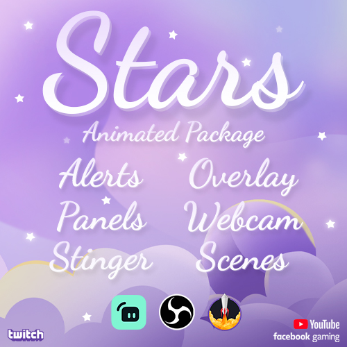 The Stars package is an ideal light theme for streamers. Featuring stars, clouds and an aesthetically please pastel colour scheme.